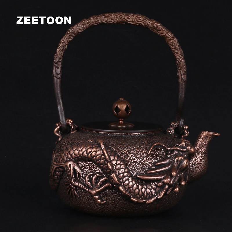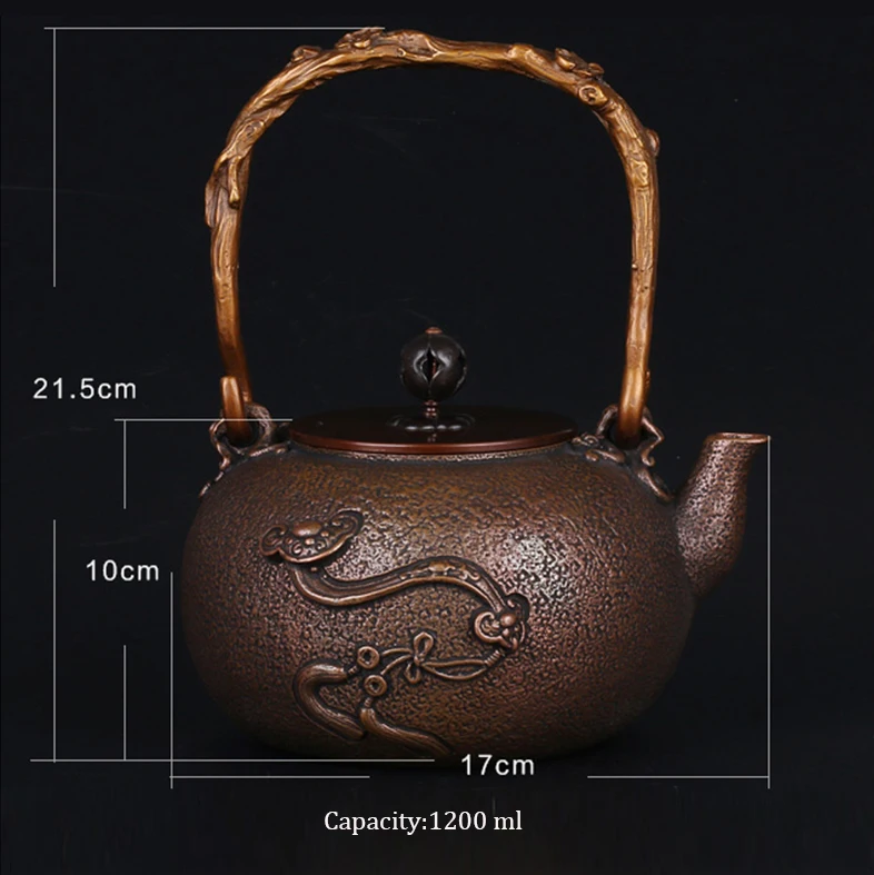 1.3L Handmade Carving Dragon Copper Health Teapot Kung Fu Tea Set Brass Kettle Boil Water Tea Pot C