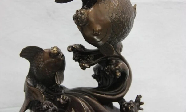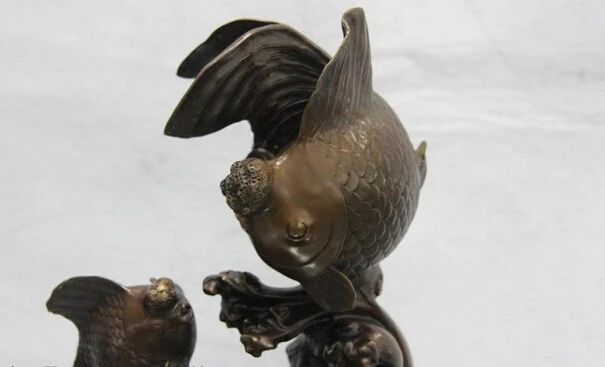BEST SELLER Collectible bronze lion statue S1064 Pure Copper Bronze China Home FengShui Wealth Two Gold Fish Ca