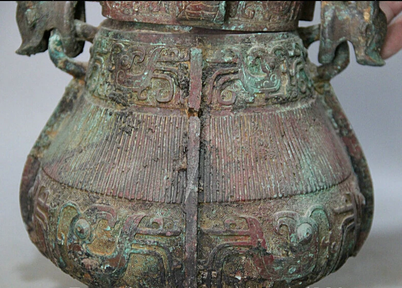 S2205 16" Old Ancient China Bronze Beast water food vessel portable pot bottle kettle D0318
