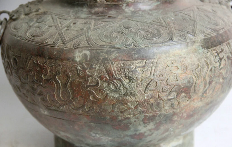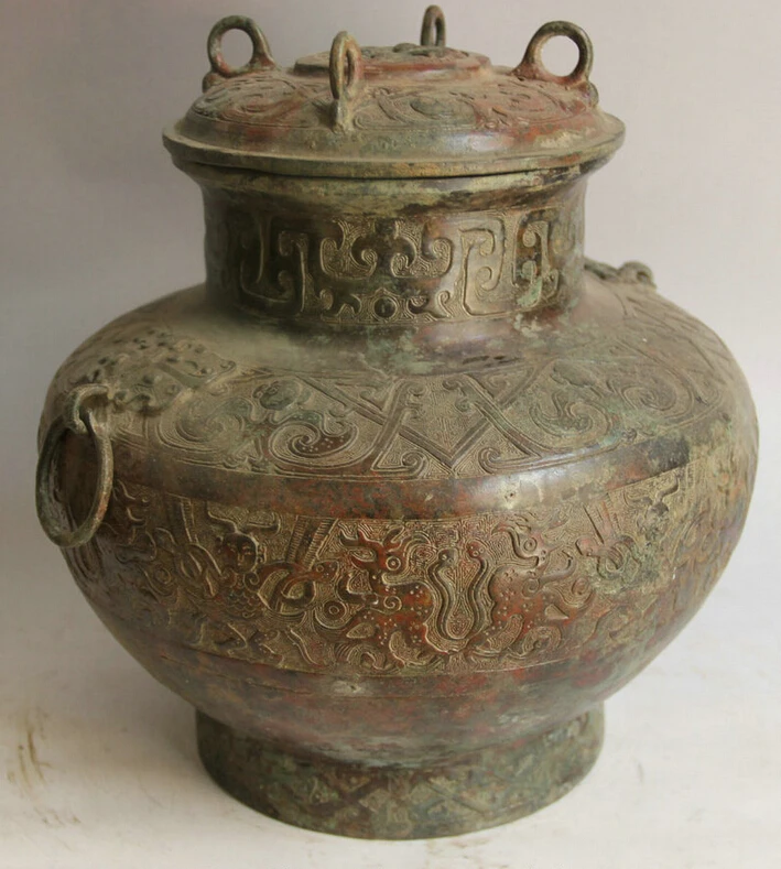 S2303 12" Old China Bronze circular Beast food water Wine vessel Pot Jar Crock kettle D0318