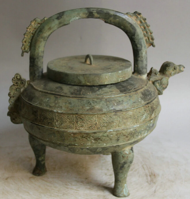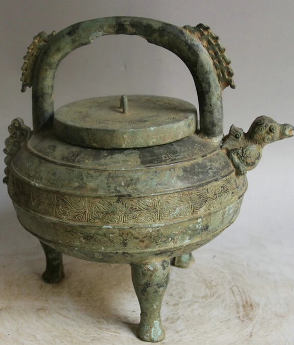 Review JP S62 11" Old Chinese Bronze 3 Foot Bird Handle Water Ware vessel Wine Tea Pot Flagon