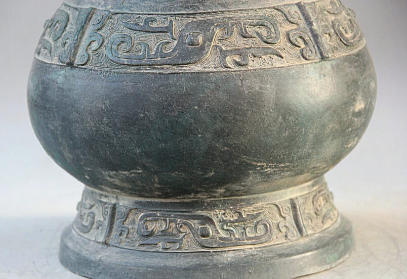 Elegant old S2173 13" Old Chinese dynasty Bronze Folk circular water vessel kettle Pot Jar Crock (A