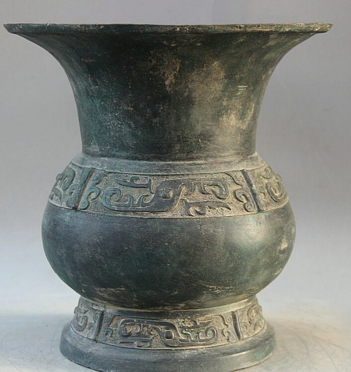 Hot Sale Elegant old S2173 13" Old Chinese dynasty Bronze Folk circular water vessel kettle Pot Jar Crock (A